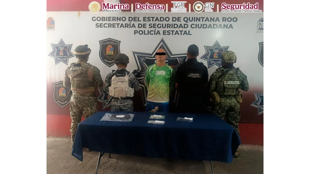 La detención se llevó a cabo en el fraccionamiento Residencial Arbolada, ubicado en el municipio de Benito Juárez. Durante el operativo, que fue resultado de trabajos de inteligencia e investigación para el seguimiento de organizaciones criminales, también fue detenida una segunda persona identificada como Joseline García Biscaino, integrante del mismo grupo delictivo.