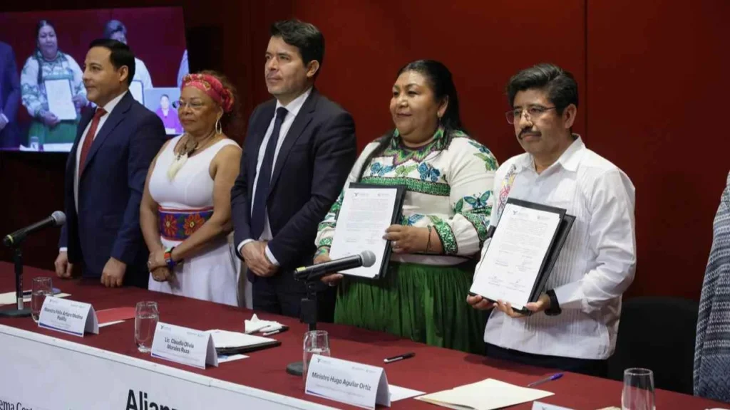 Ciudad De México, 22 de marzo de 2026.- La Suprema Corte de Justicia de la Nación (SCJN) y el Consejo Nacional para Prevenir la Discriminación (Conapred) firmaron un convenio el 20 de marzo de 2026 con el objetivo de promover la igualdad sustantiva y la no discriminación en la función jurisdiccional. El acuerdo fue suscrito por el ministro presidente Hugo Aguilar Ortiz y la presidenta del Conapred, Claudia Olivia Morales Reza, en un acto celebrado en la capital del país, donde se buscó establecer mecanismos para incorporar la perspectiva de derechos humanos en las decisiones judiciales.