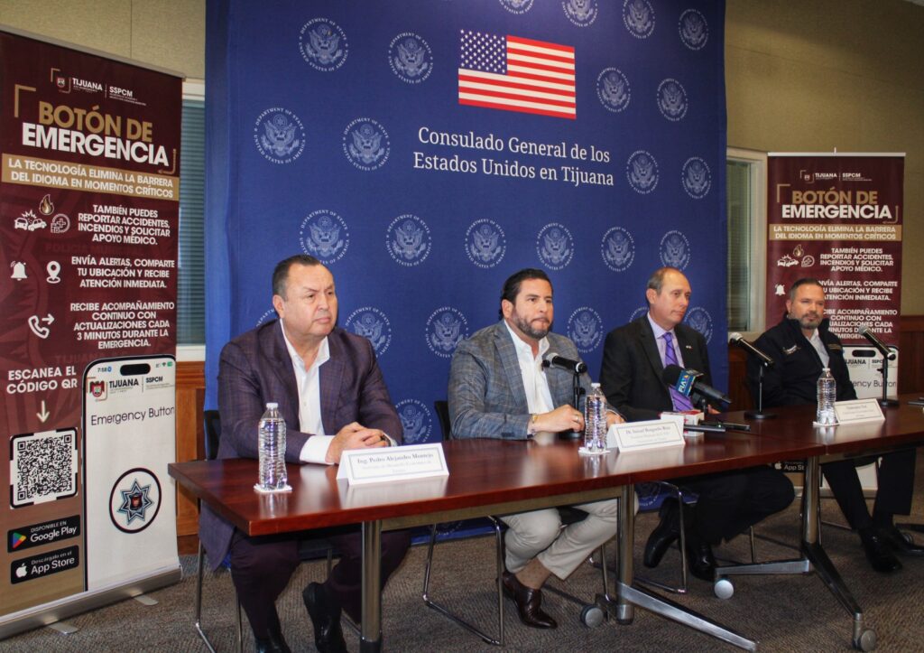 Tijuana, 30 de marzo de 2026.- El gobierno municipal de Tijuana y el Consulado General de Estados Unidos en la ciudad relanzaron el viernes 27 de marzo una nueva versión del Botón de Emergencia digital, ahora con interfaz bilingüe español-inglés para atender a turistas estadounidenses.